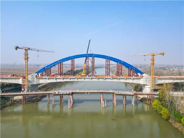 11月13日,中铁七局平漯周高铁跨沙河连续梁拱拱部顺利合龙。该连续梁拱上跨通航河道沙河,是本项目控制性工程和重难点工程。(南京公司 闫萌 李浩浩)
