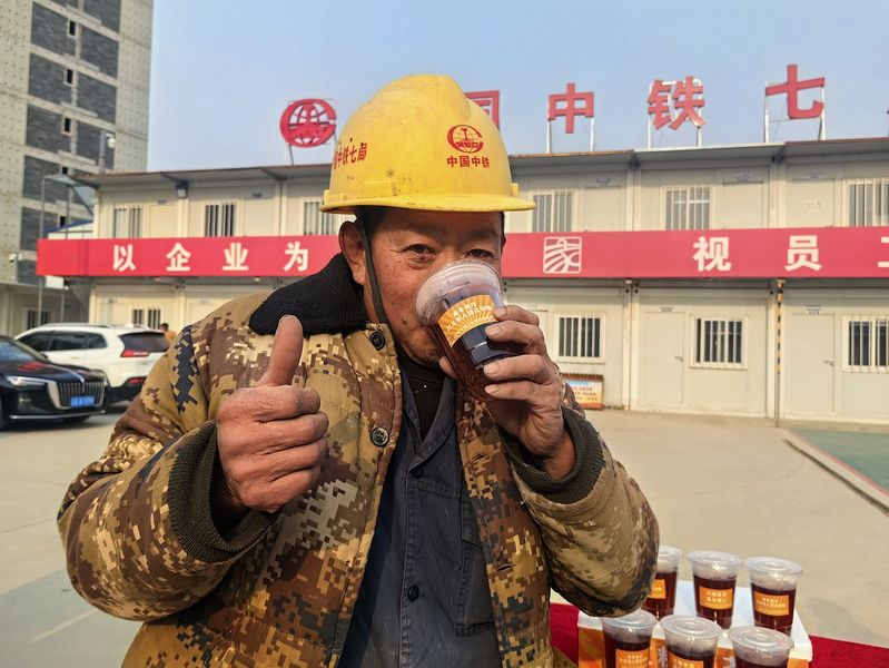 近日,沈阳迎来今冬首场降雪,气温骤降,寒意袭人。为切实加强对一线作业人员的关怀保障,二公司迅速启动冬季送温暖特别行动,为严寒中坚守岗位的建设者们送去红糖姜茶。(二公司 张阳)