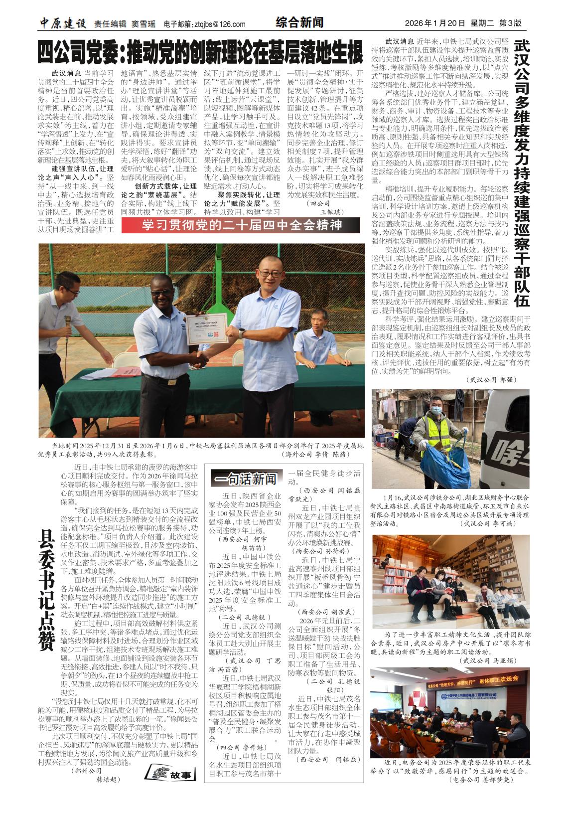 四公司党委:推动党的创新理论在基层落地生根