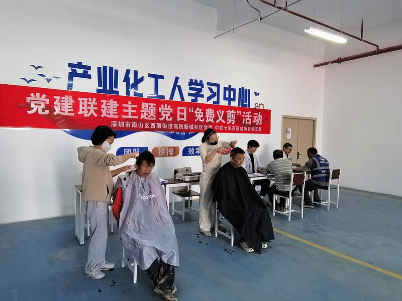 1月27日,中铁七局深圳西丽站项目部联合深圳市南山区西丽街道高铁新城社区党委,在项目产业化工人驻地开展党建联建主题党日“免费义剪”活动。