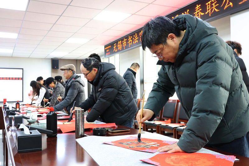 1月27日,无锡市书法家协会走进中铁七局锡太高速公路建设现场,开展“万福迎春”送福、送春联公益活动,为奋战在工程一线的建设者送上新春祝福。