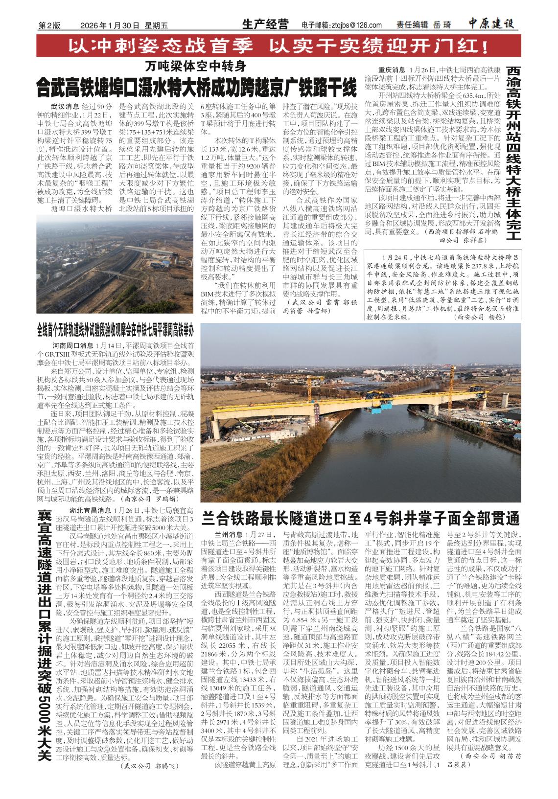 兰合铁路最长隧道进口至4号斜井掌子面全部贯通